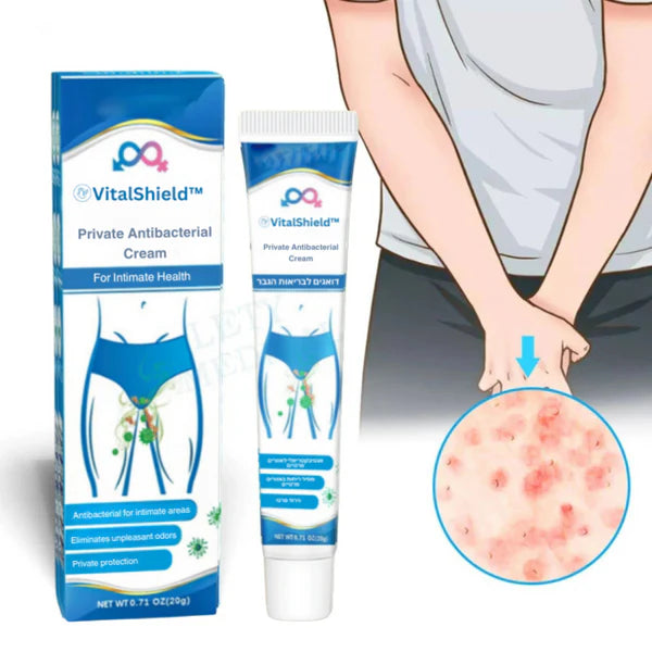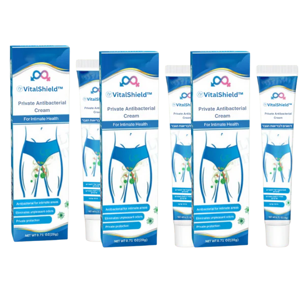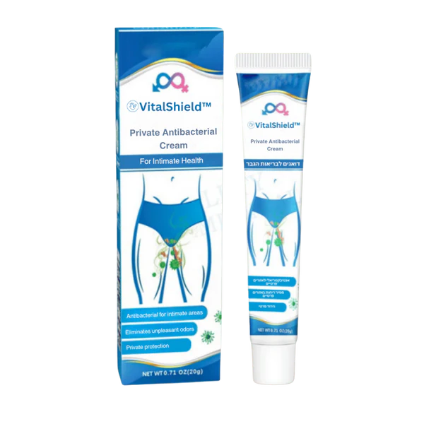 VitalShield™ is an antibacterial intimate cream designed to soothe irritation and eliminate bacteria within 10 seconds. It aims to neutralize bacteria, prevent yeast infections, protect against unpleasant odors and irritation, and restore the natural pH balance of intimate areas.